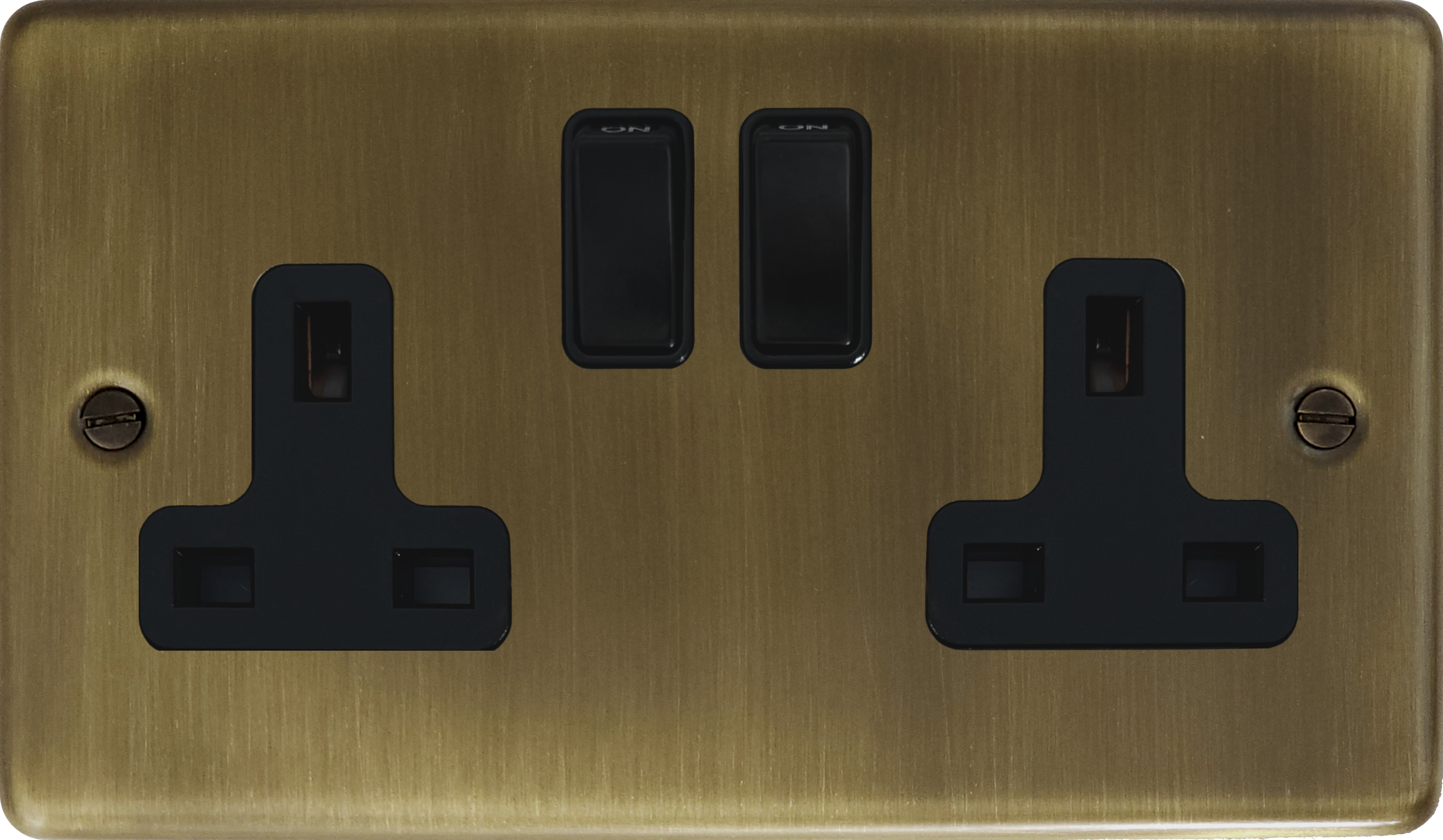 Antique Brass Double Socket (Black Switch) CL.10B.AB