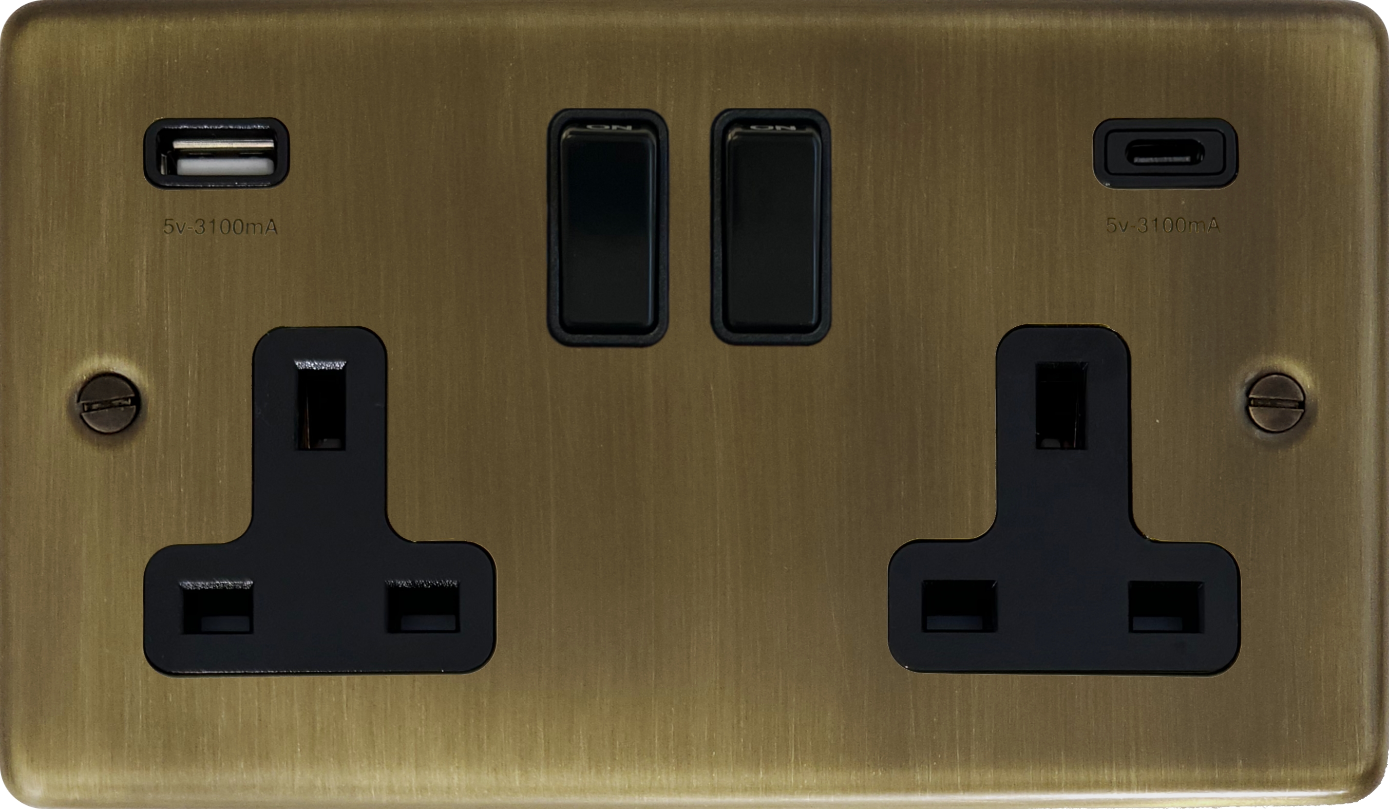 Antique Brass Double Socket with USB (2 Gang/USB-A and USB-C) CL.911B.AB