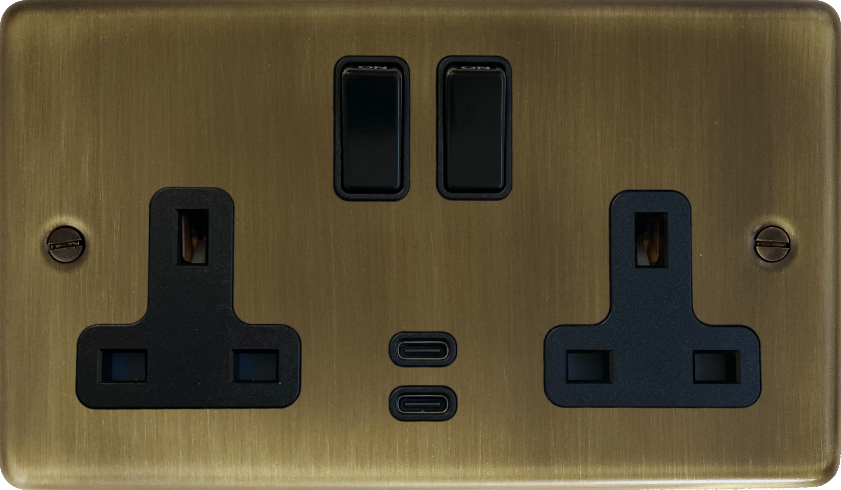 Antique Brass Double Socket with USB (2 Gang/USB-C) - CAB913B