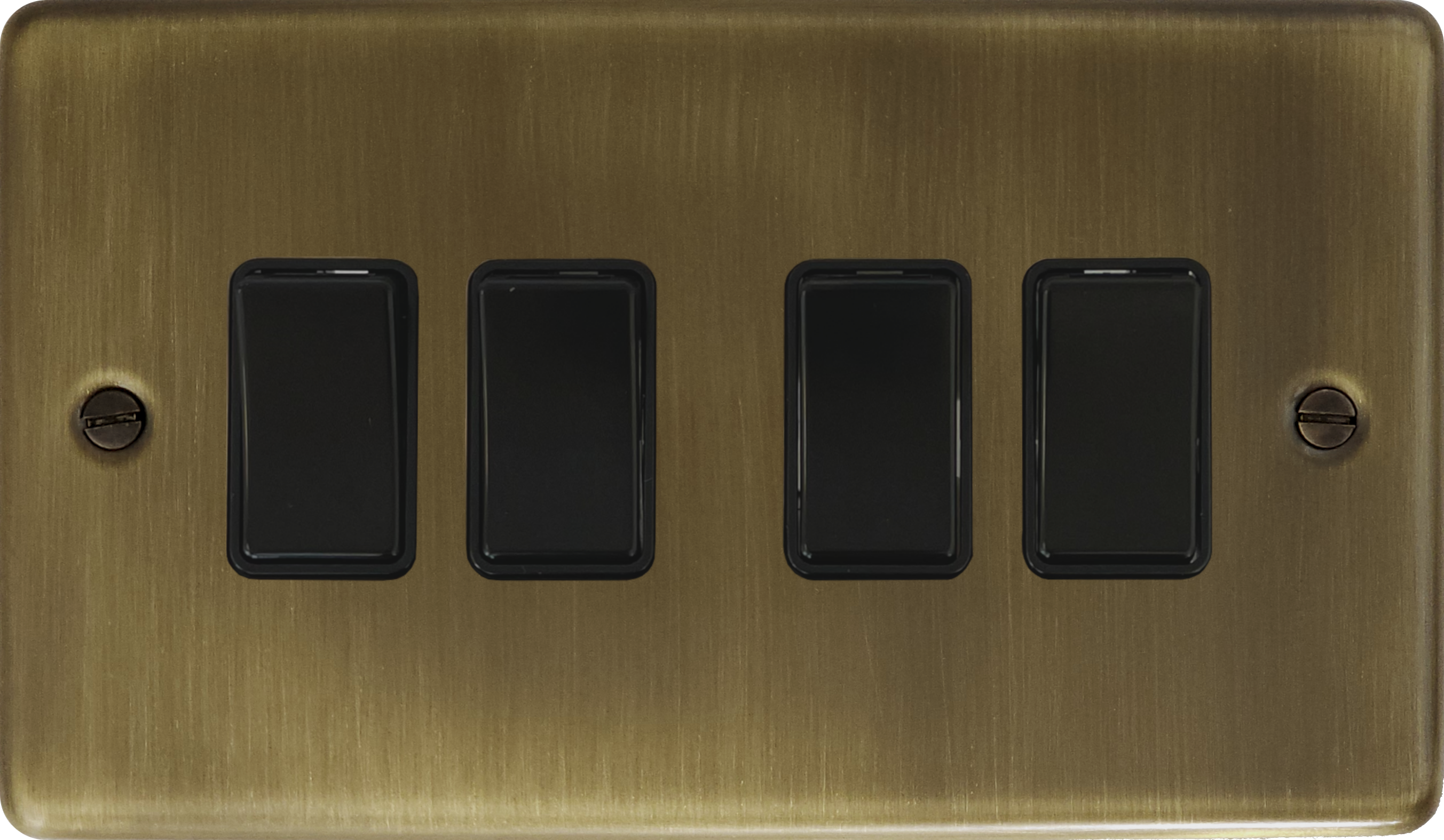 Antique Brass Light Switch (4 Gang/Black Switch) - CAB4B