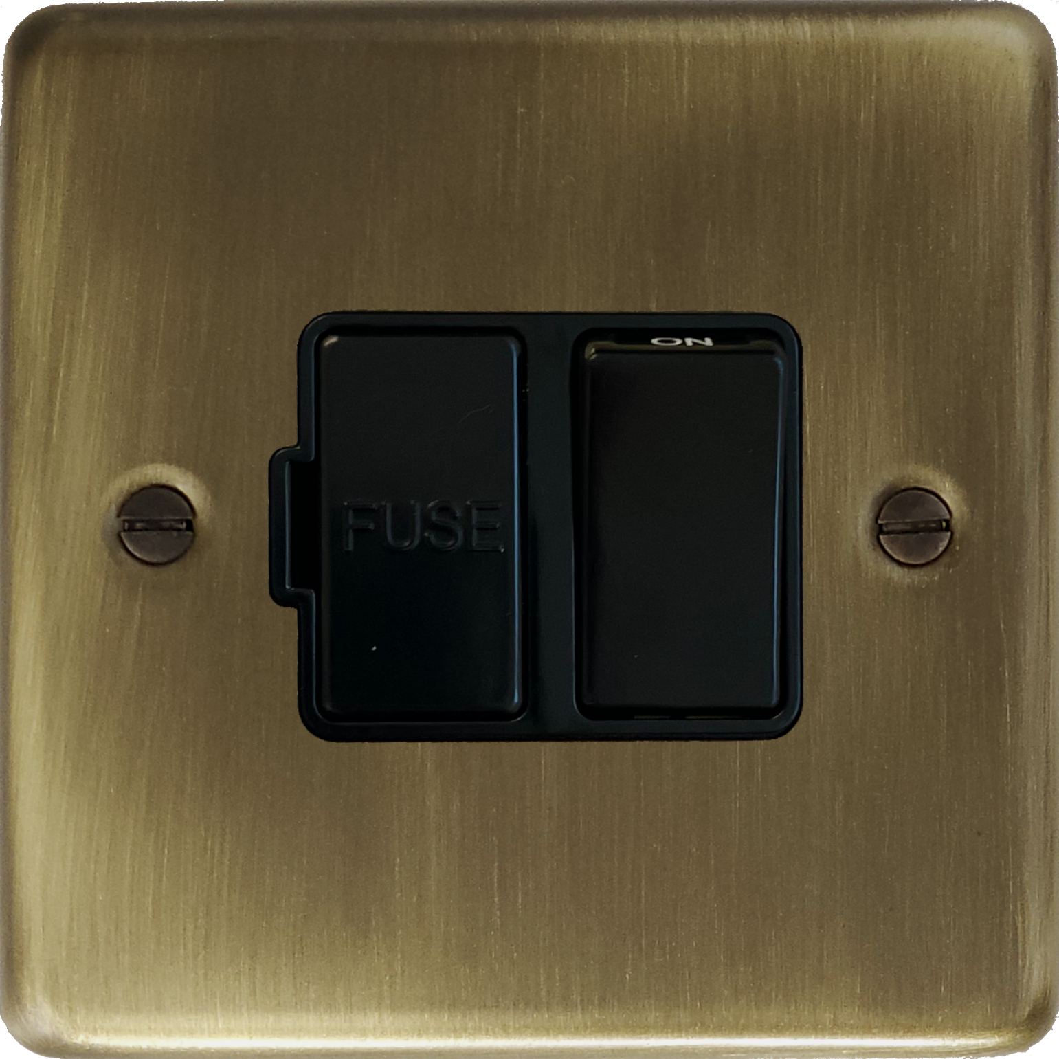 Antique Brass Switched Fused Spur (Black Insert/Black Switch) CL.57B.AB