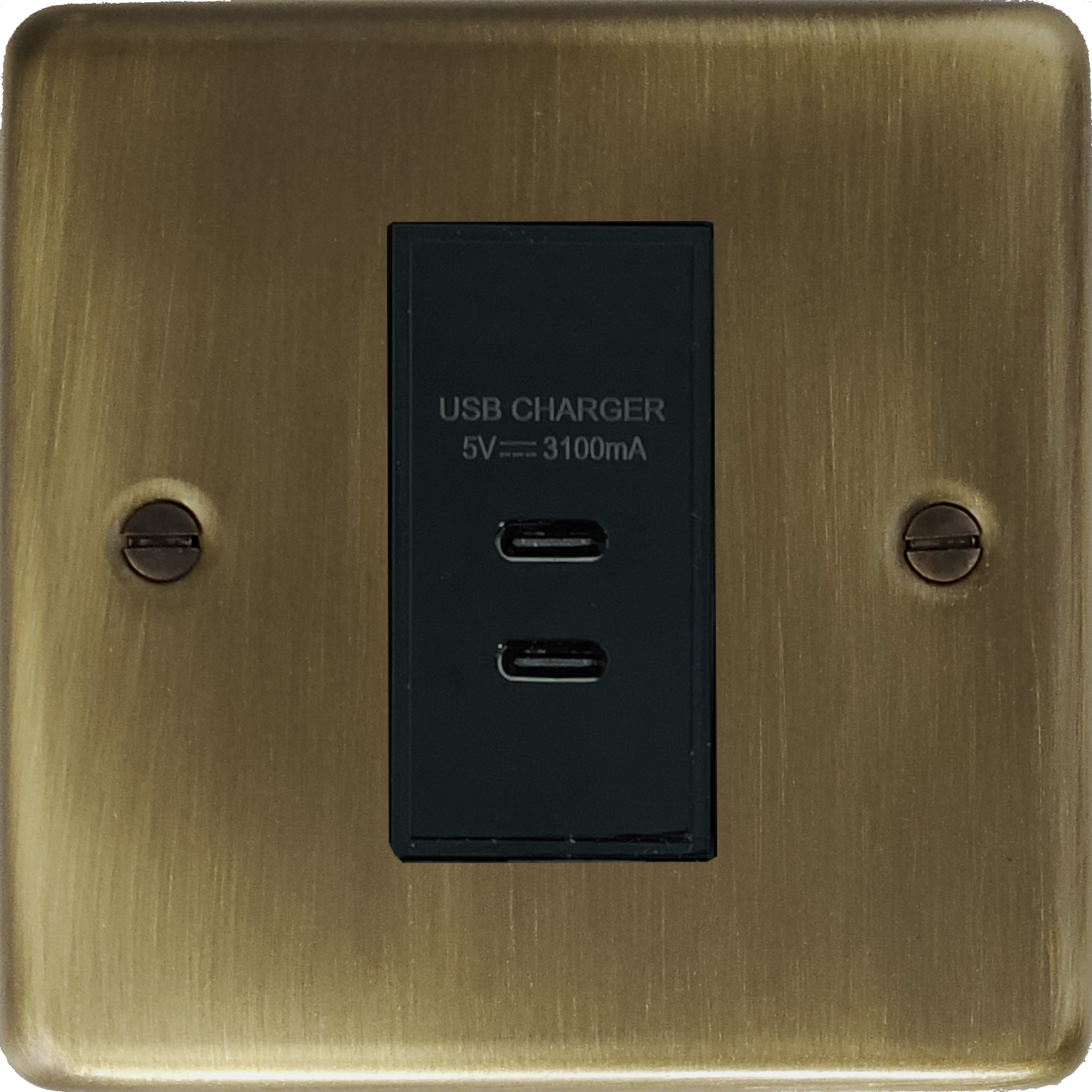 Antique Brass USB Charger (2x USB-C) (1 Gang) - CAB42B