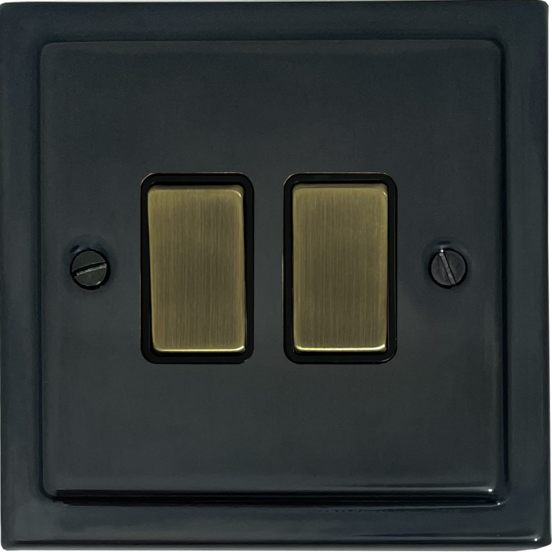 Black Bronze Light Switch (2 Gang/Antique Brass Switch/Black Insert) VI.302AB.BB