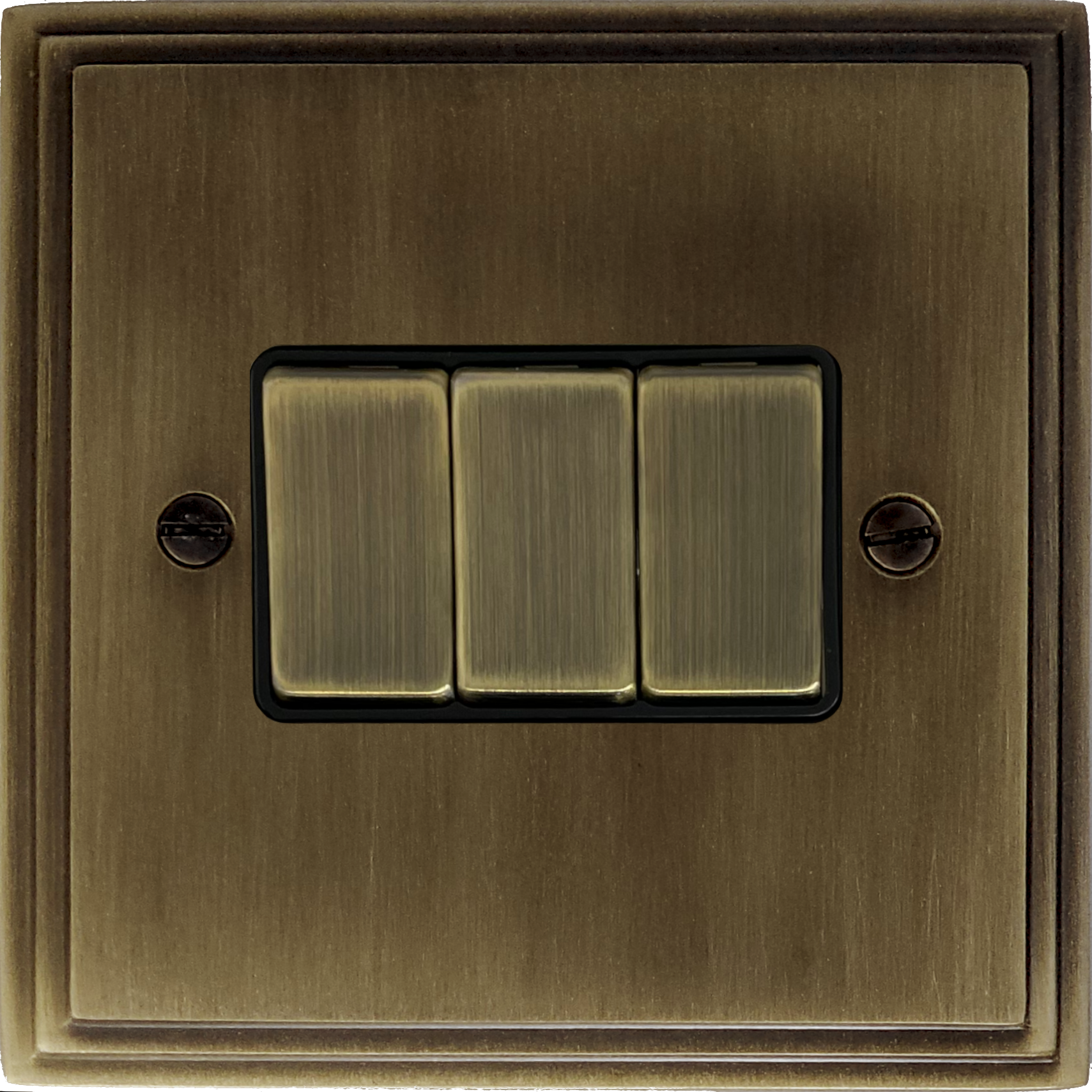 Cast Antique Brass Light Switch (3 Gang) VC.303.AB