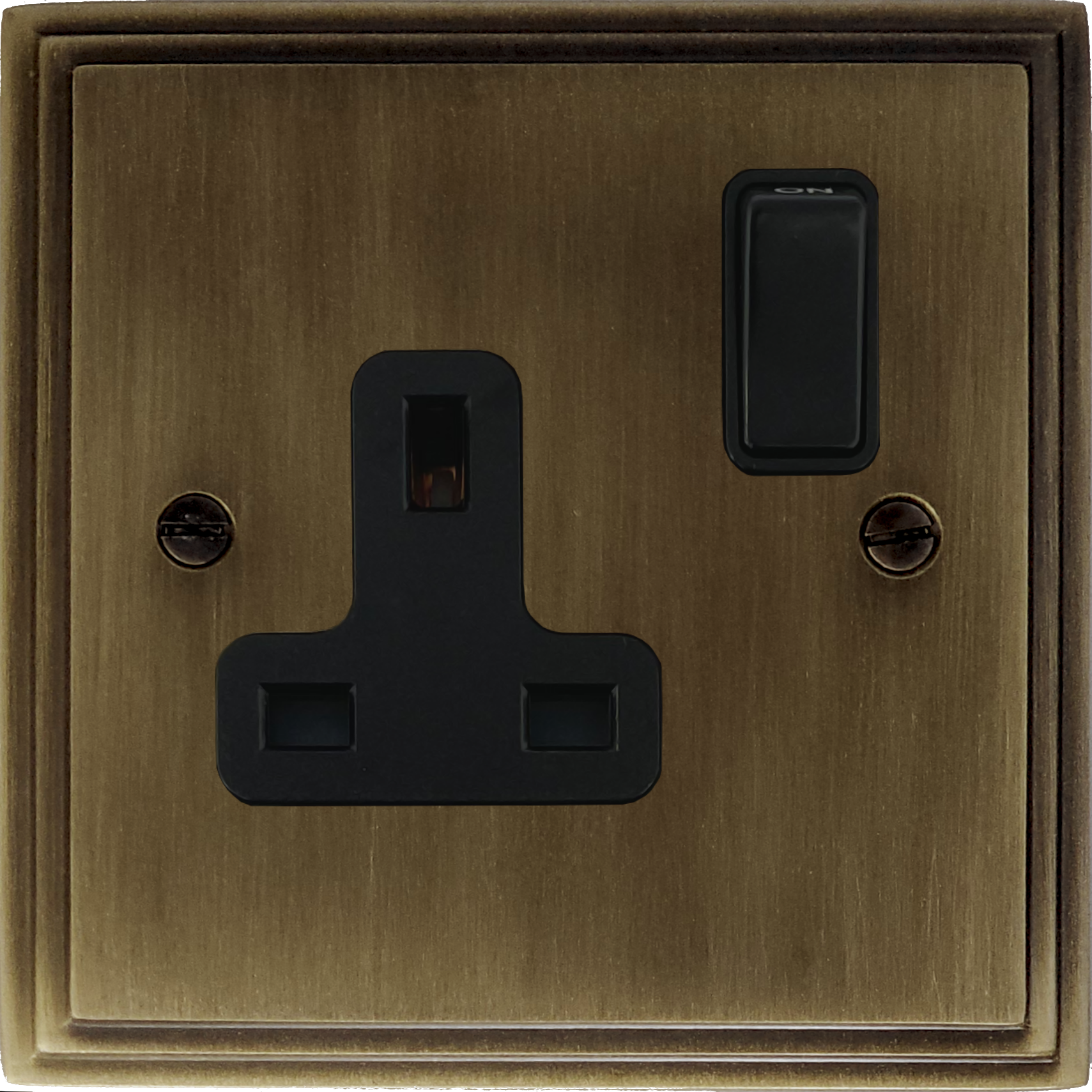 Cast Antique Brass Single Socket (Black Switch) VC.9B.AB