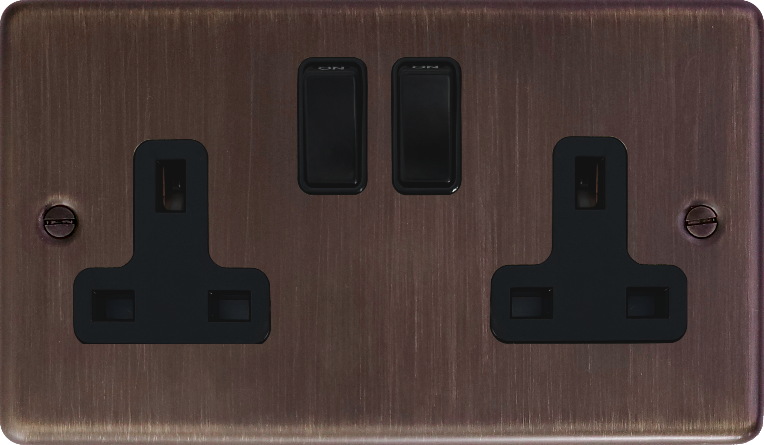 Contour Antique Copper Double Socket (Black Switch) CL.10B.AC