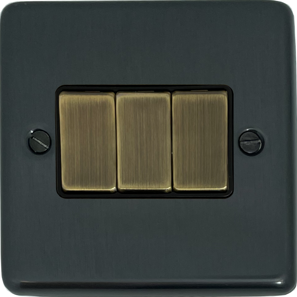 Contour Black Bronze Light Switch (3 Gang/Antique Brass Switches) CL.303AB.BB