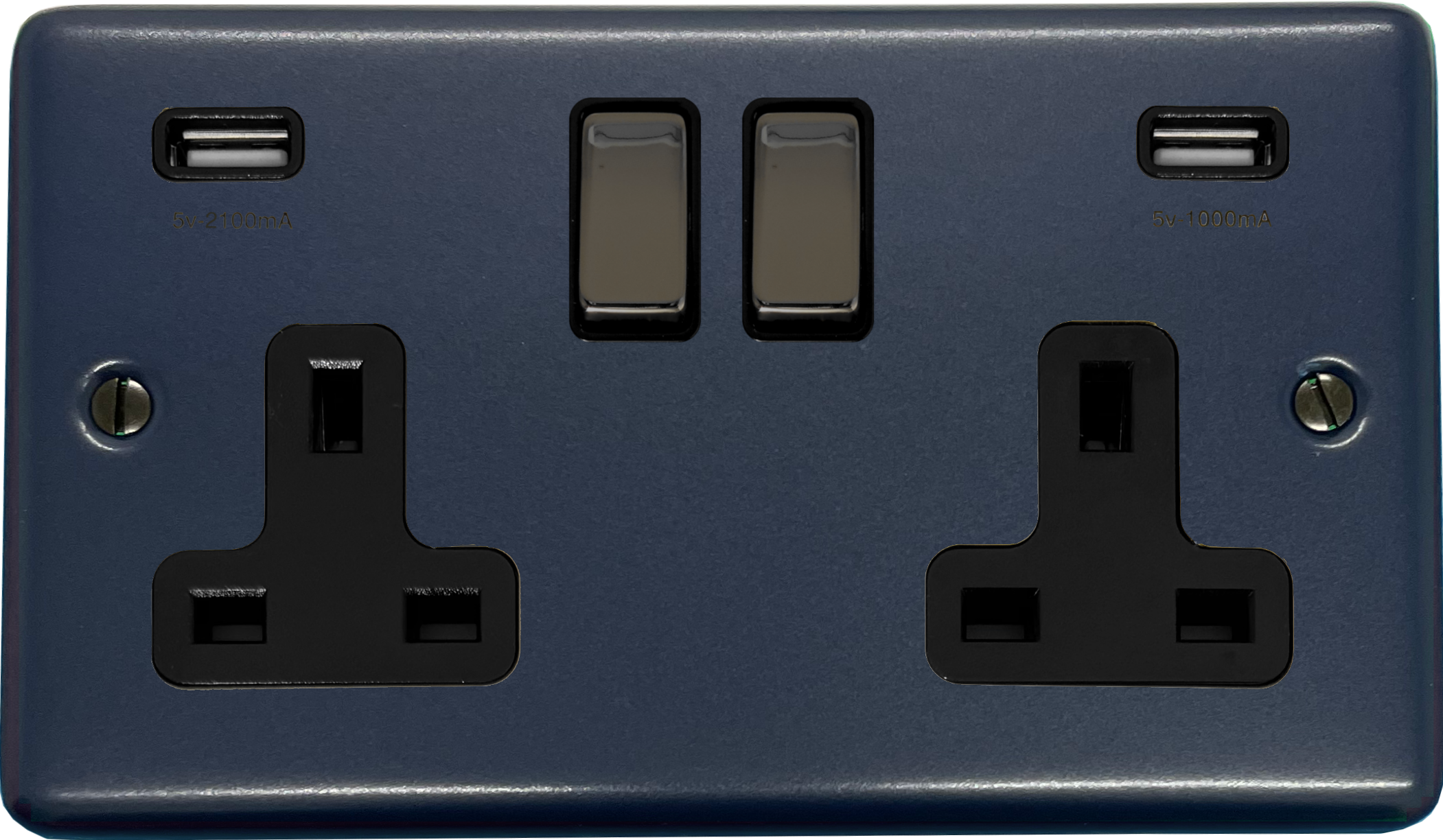 Contour Blue Double Socket with USB (Black Insert/Black Nickel Switches) - CRB3910-BN
