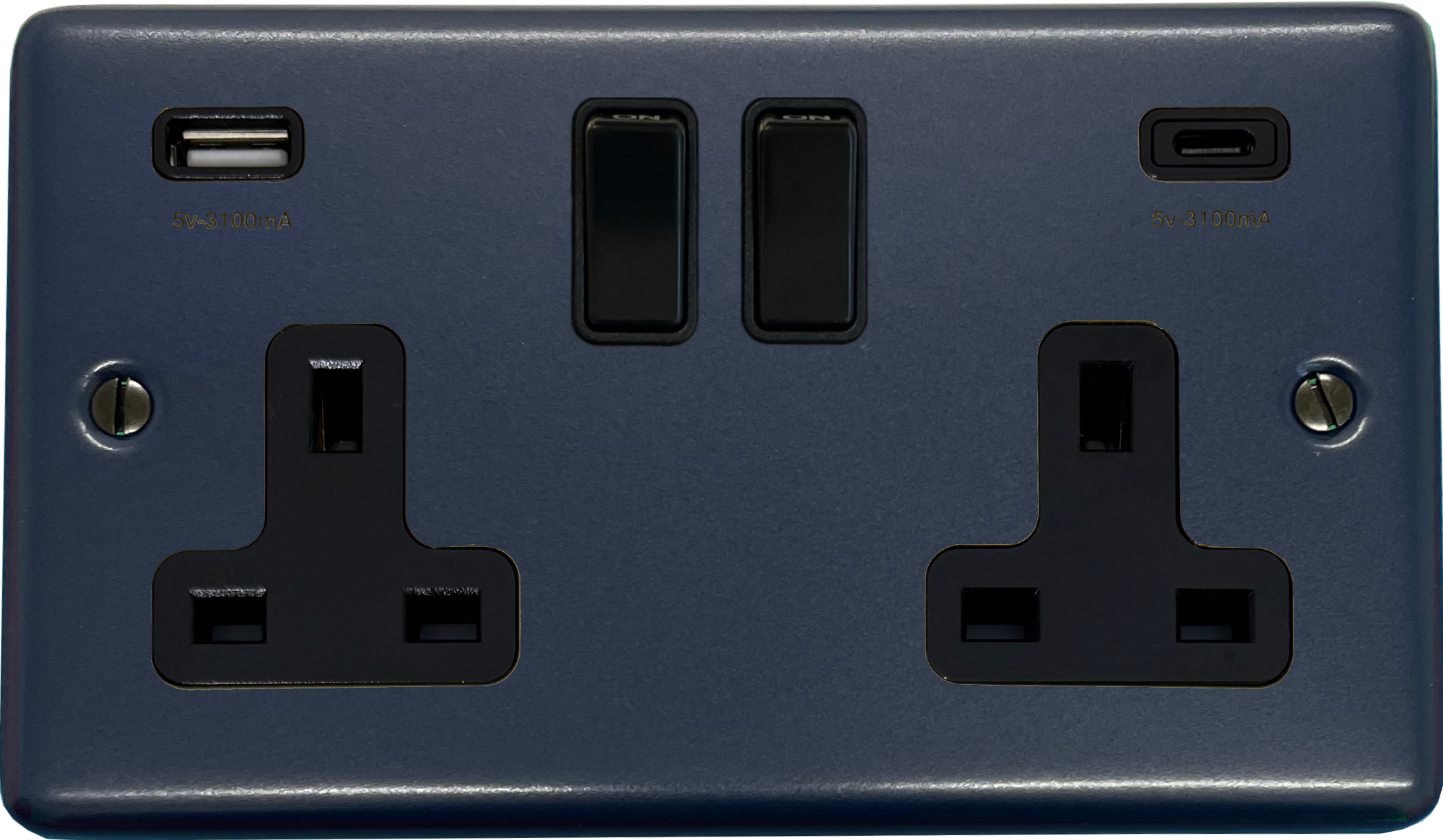 Contour Blue Double Socket with USB (USB-A and USB-C/Black Switches) CL.911B.RB