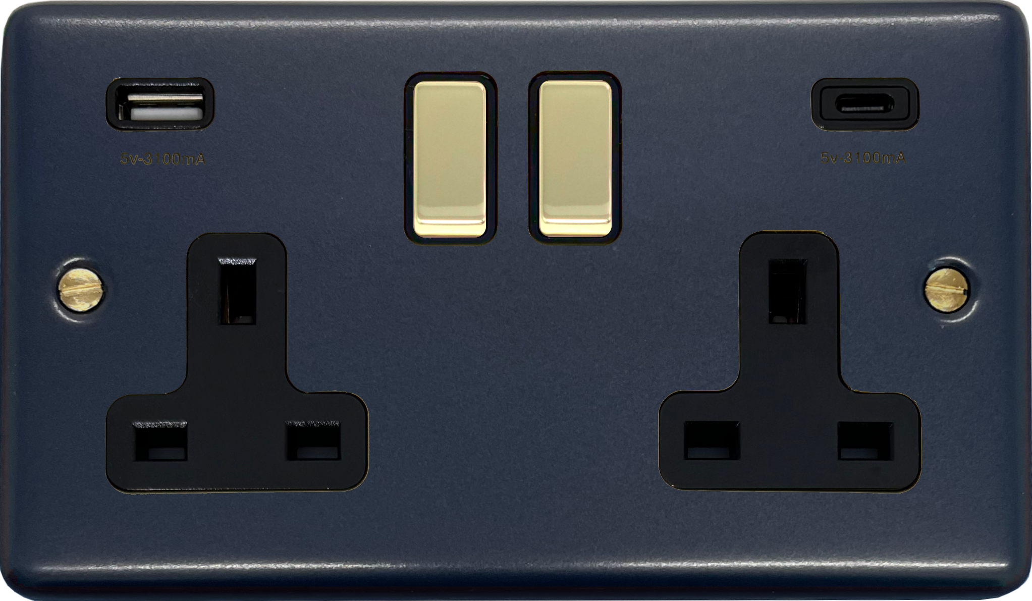 Contour Blue Double Socket with USB (USB-A and USB-C/Polished Brass Switches) CL.3911PB.RB