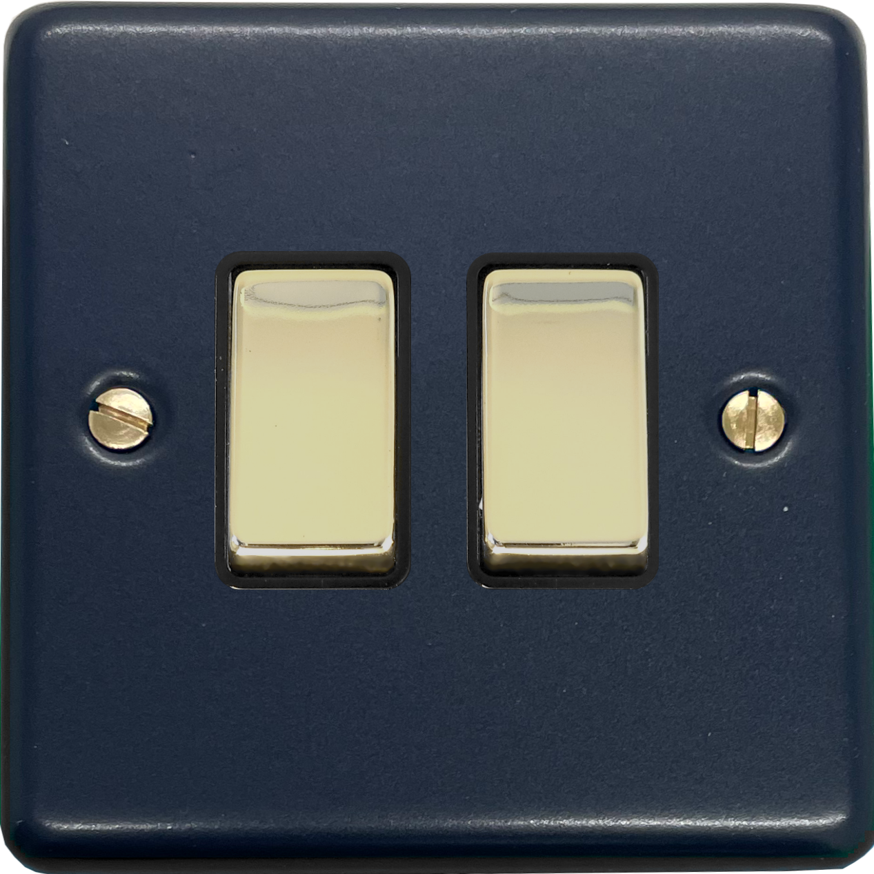 Contour Blue Light Switch (2 Gang/Black Insert/Polished Brass Switches) CL.302PB.RB