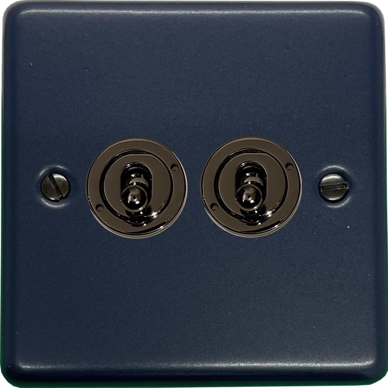 Contour Blue Toggle Switch (2 Gang/Black Nickel Toggle) - CRB382-BN
