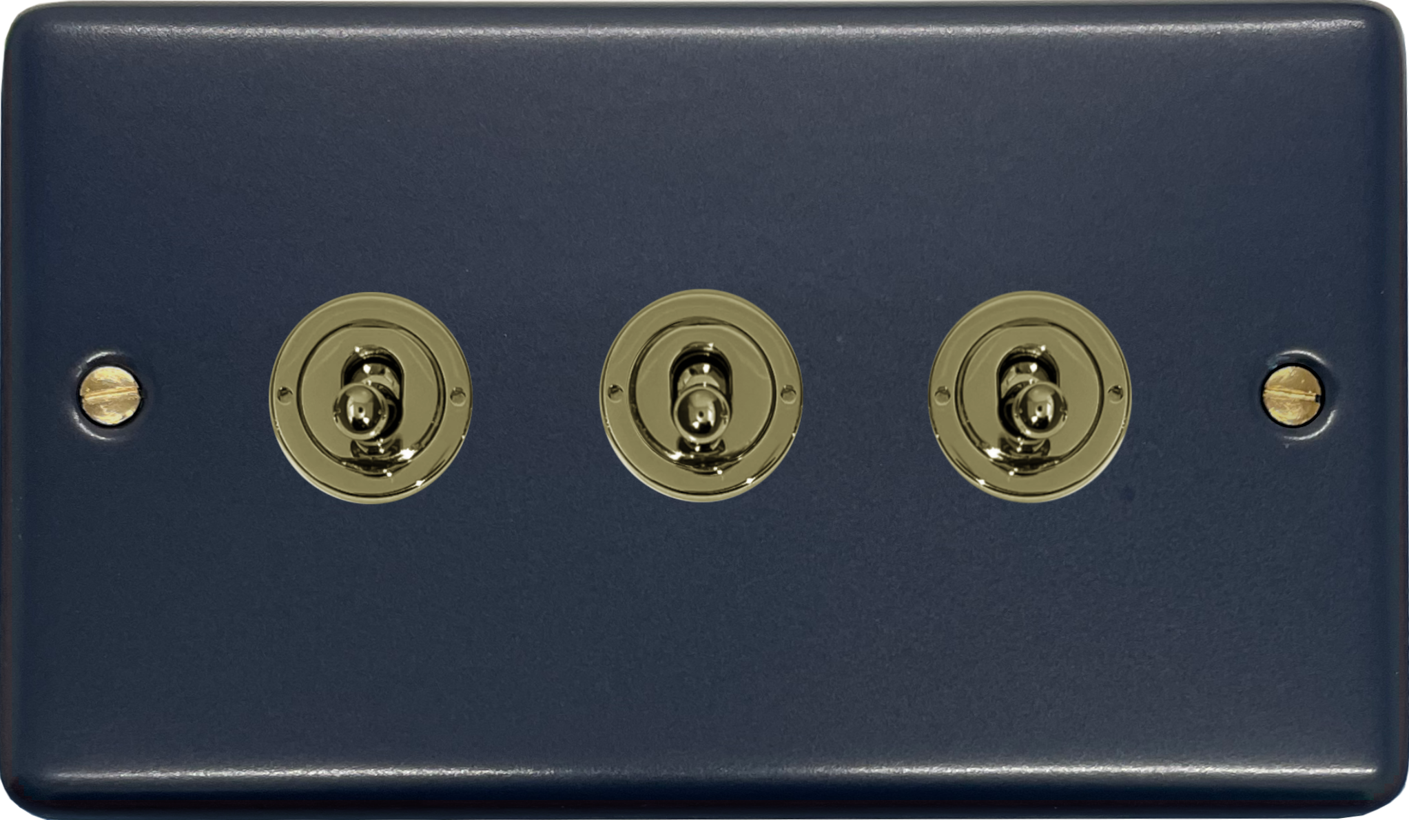 Contour Blue Toggle Switch (3 Gang/Polished Brass Switches)