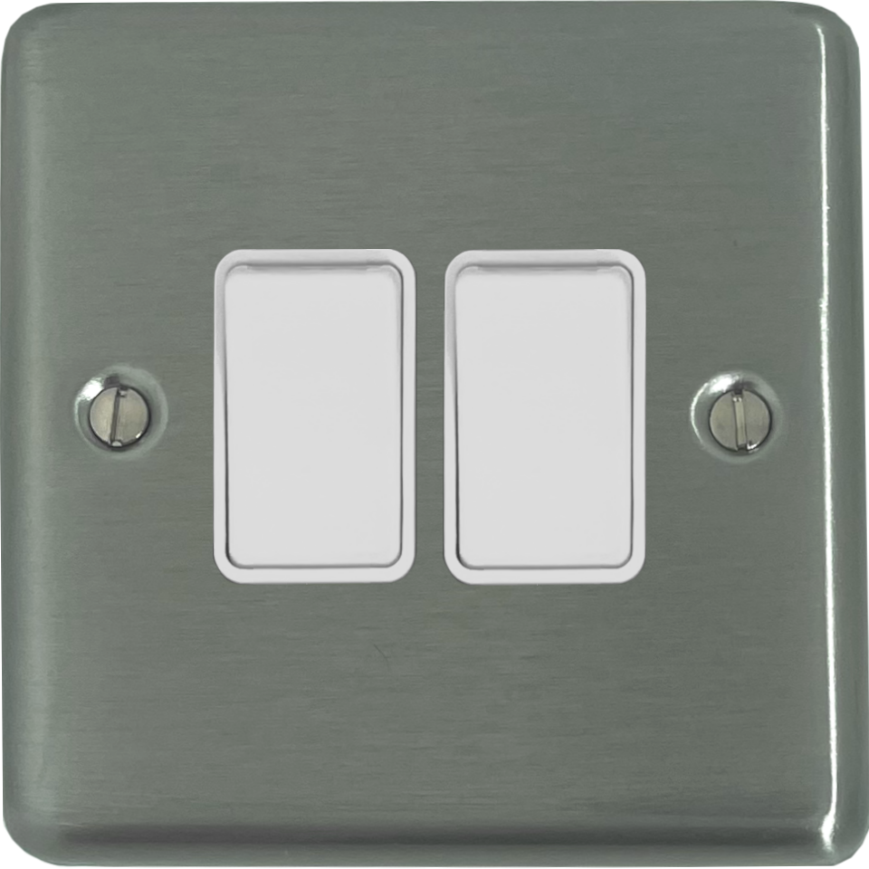 Contour Stainless Steel Light Switch (2 Gang/White Switches) CL.2W.SS