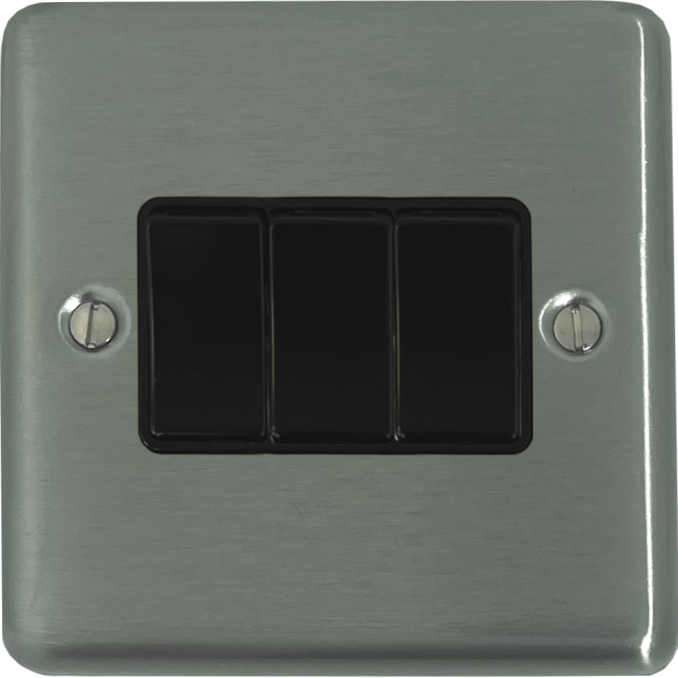 Contour Stainless Steel Light Switch (3 Gang/Black Switch) - CSS3B