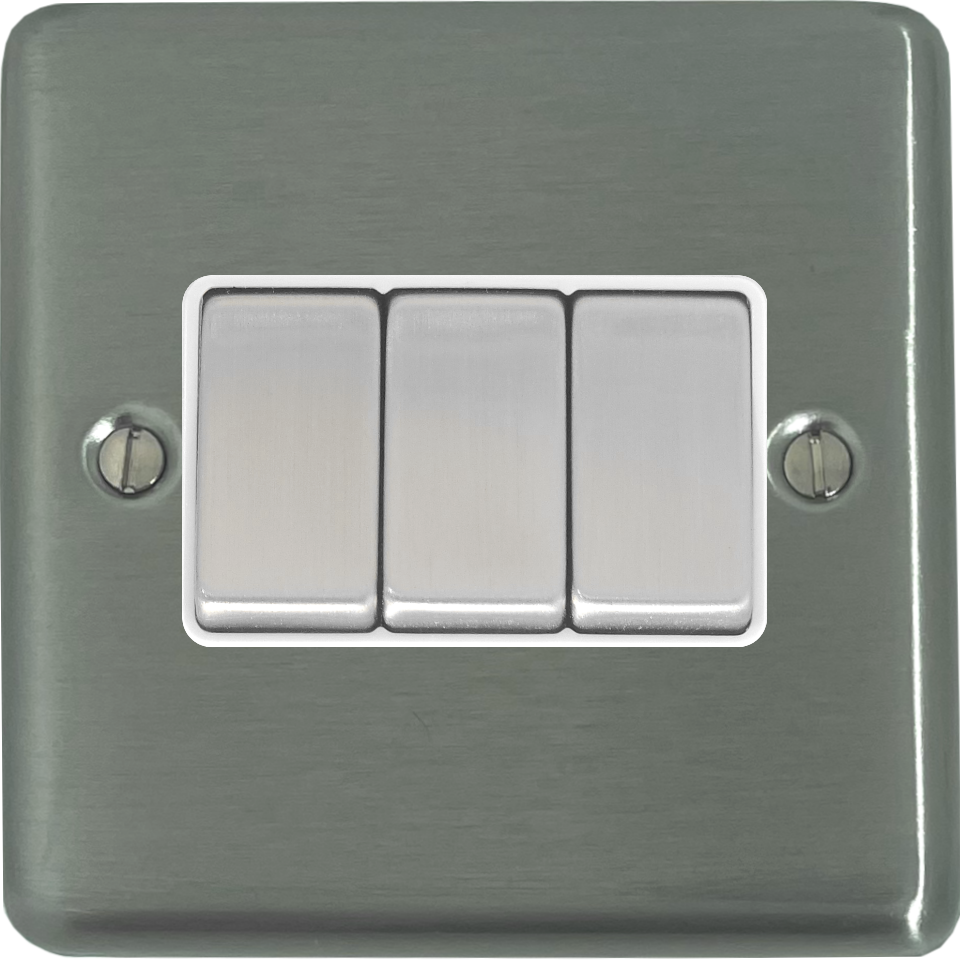 Contour Stainless Steel Light Switch (3 Gang/White Insert/Chrome Switches) CL.203.SS