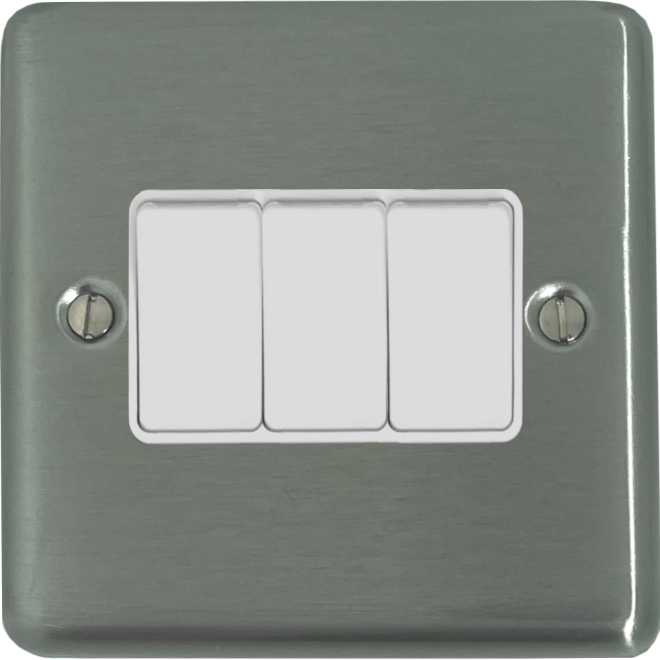 Contour Stainless Steel Light Switch (3 Gang/White Switches) CL.3W.SS