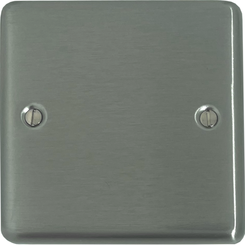 It is part of the G+H Electrical Accessories range of brushed steel sockets and switches. It fits on a standard single switch back box (not supplied).