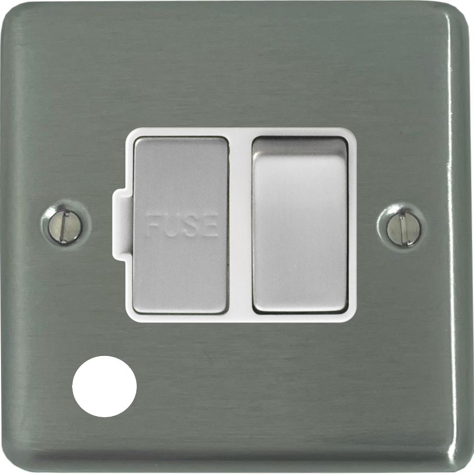 Contour Stainless Steel Switched Fused Spur with Flex Outlet (White Insert/Chrome Switch) CL.256.SS