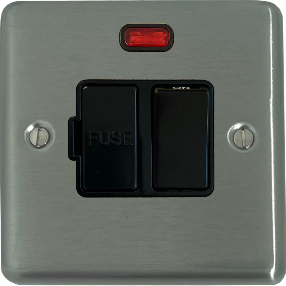 Contour Stainless Steel Switched Fused Spur with Neon (Black Switch) CL.27B.SS