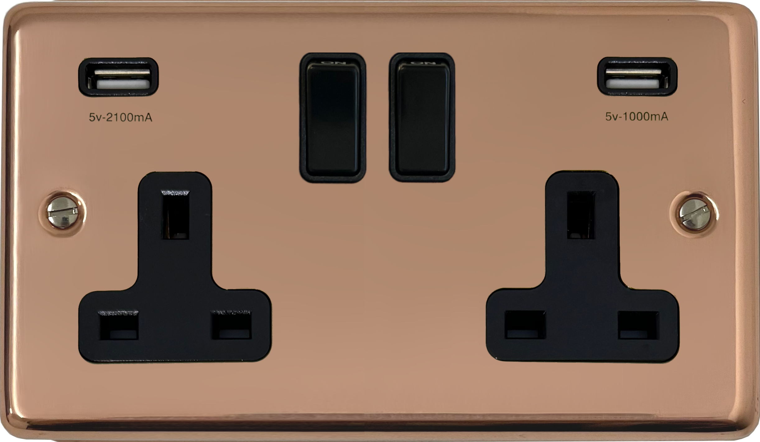 Contour Copper Hand Waxed Double Socket with USB (Black Switch) - CBCHX910B