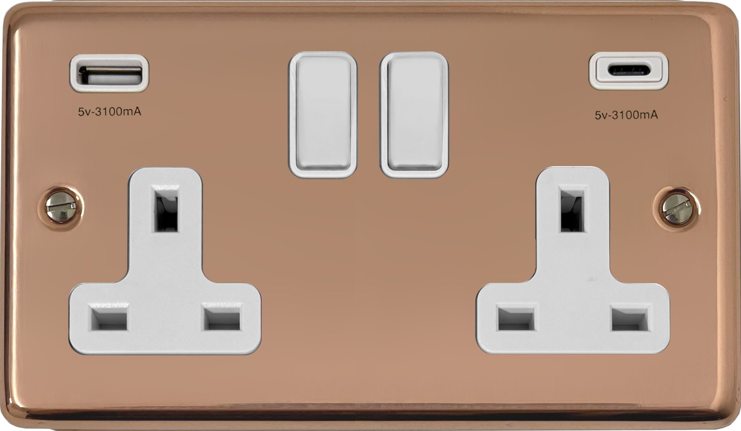 Contour Copper Hand Waxed Double Socket with USB (USB-A and USB-C/White Switches) CL.911W.BCHX