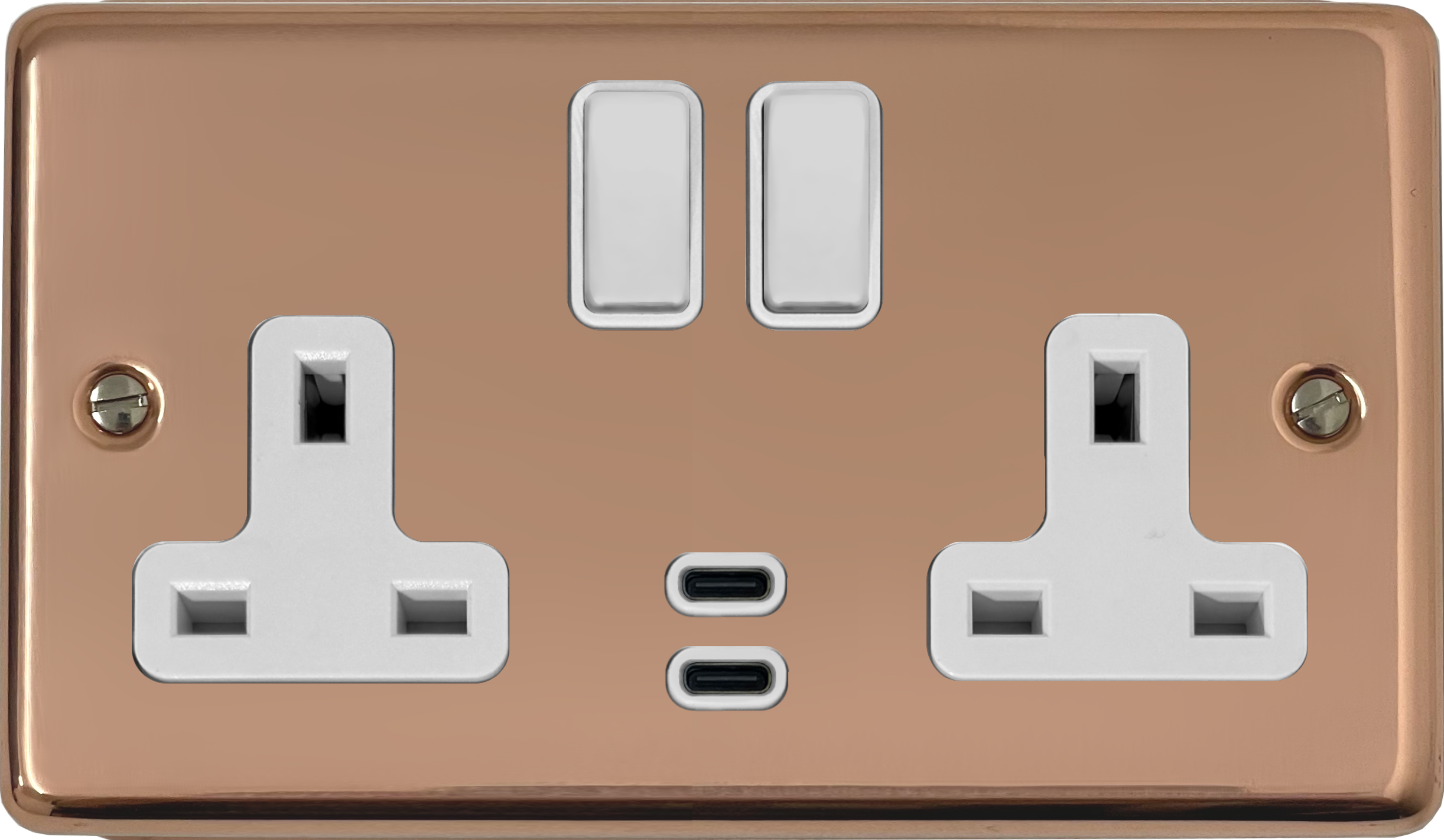 Contour Copper Hand Waxed Double Socket with Dual USB-C (White Switches) CL.913W.BCHX