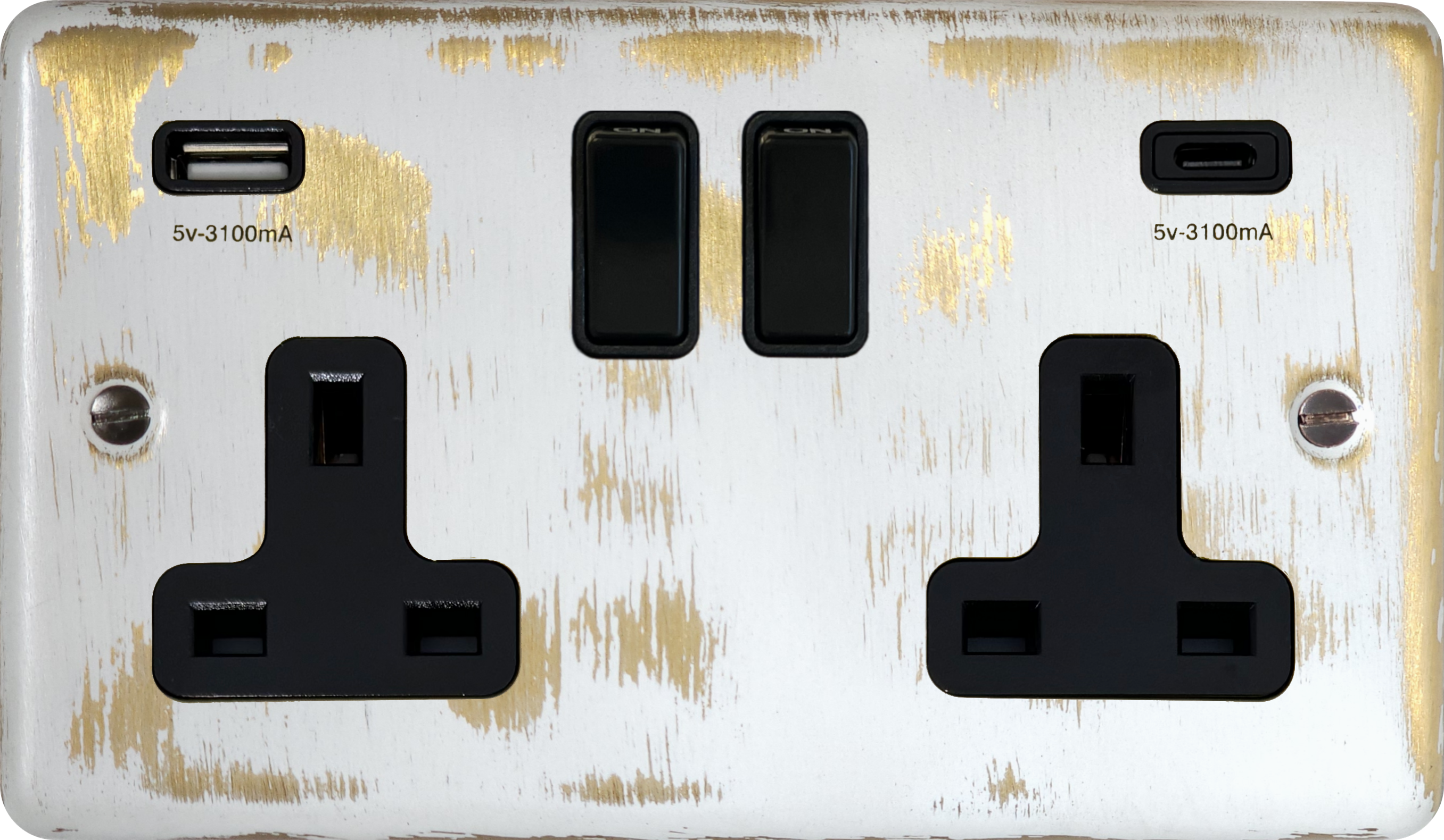 Contour Dover Bronze Double Socket with USB (USB-A and USB-C/Black Switches) - CDB911B