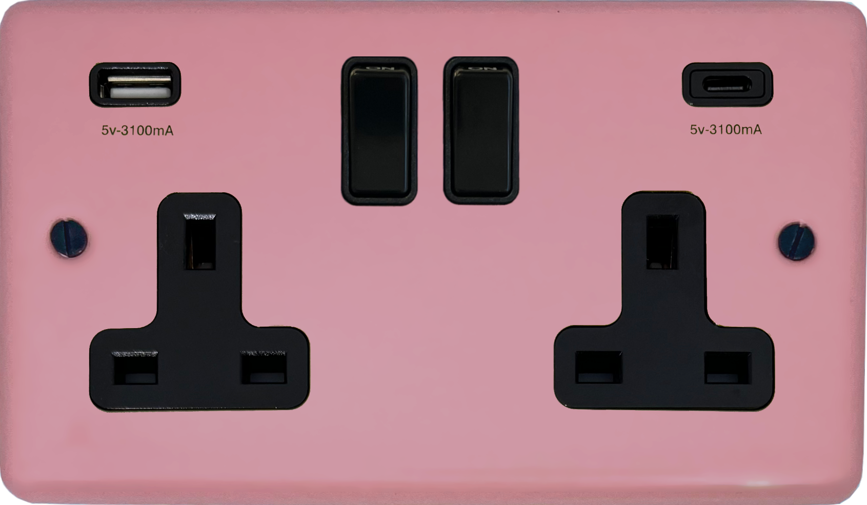 Contour Gloss Pink Double Socket with USB (USB-A and USB-C/Black Switches) - CGP911B