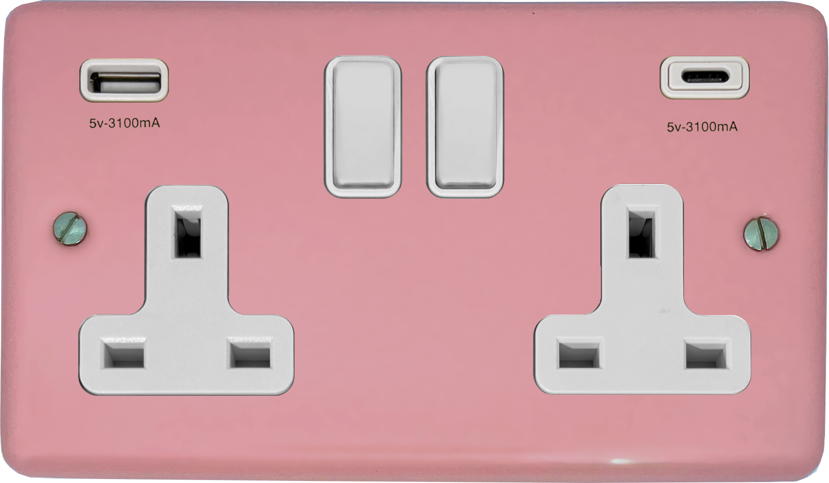 Contour Gloss Pink Double Socket with USB (USB-A and USB-C/White Switches) - CGP911W