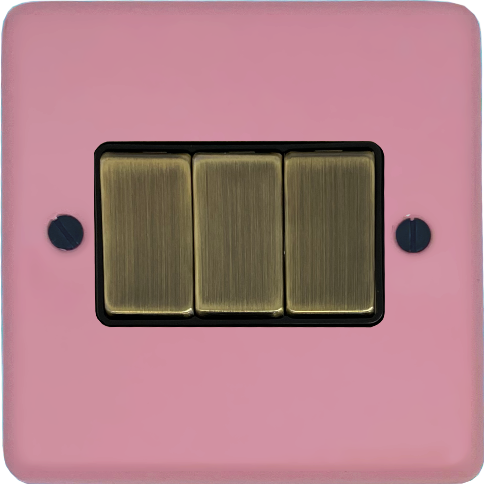 Contour Gloss Pink Light Switch (3 Gang/Black Insert/Antique Brass Switches) - CGP303-AB