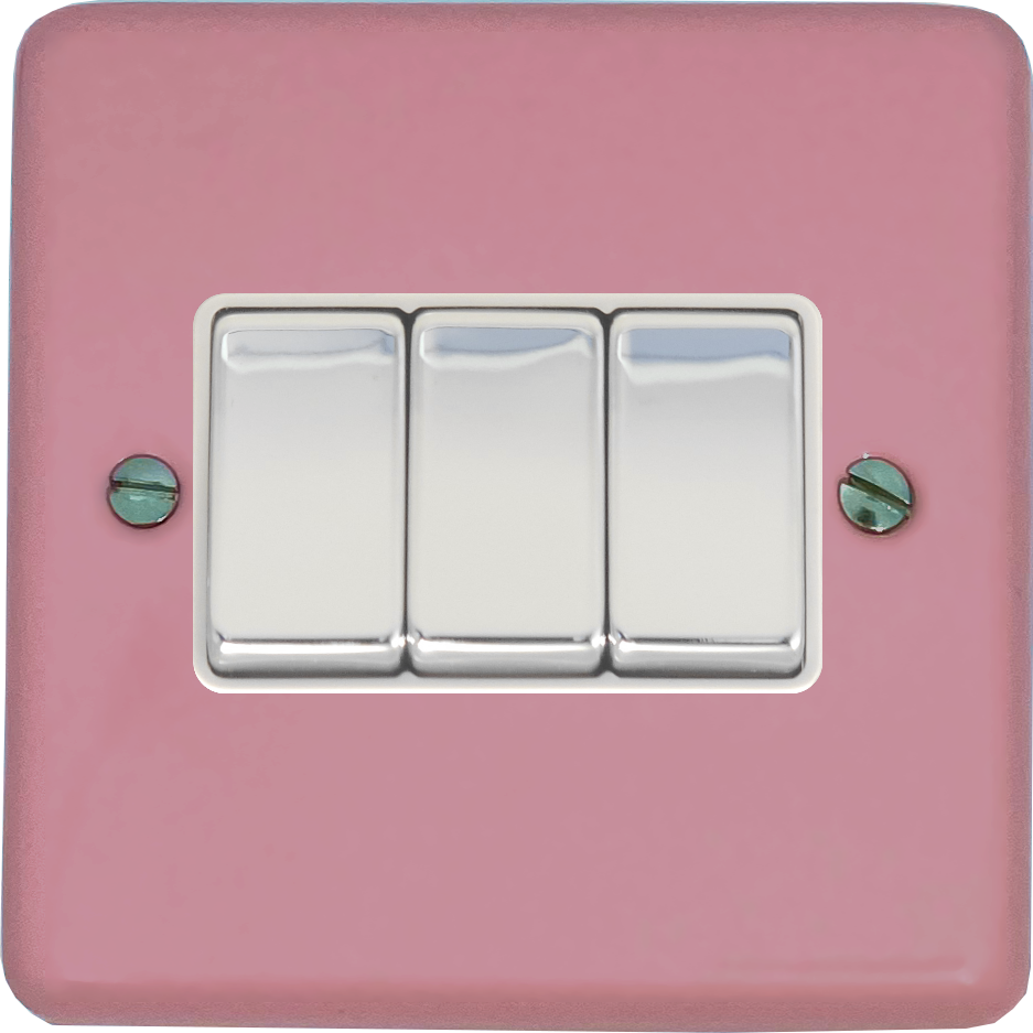 Contour Gloss Pink Light Switch (3 Gang/White Insert/Polished Chrome Switches) - CGP203-PC