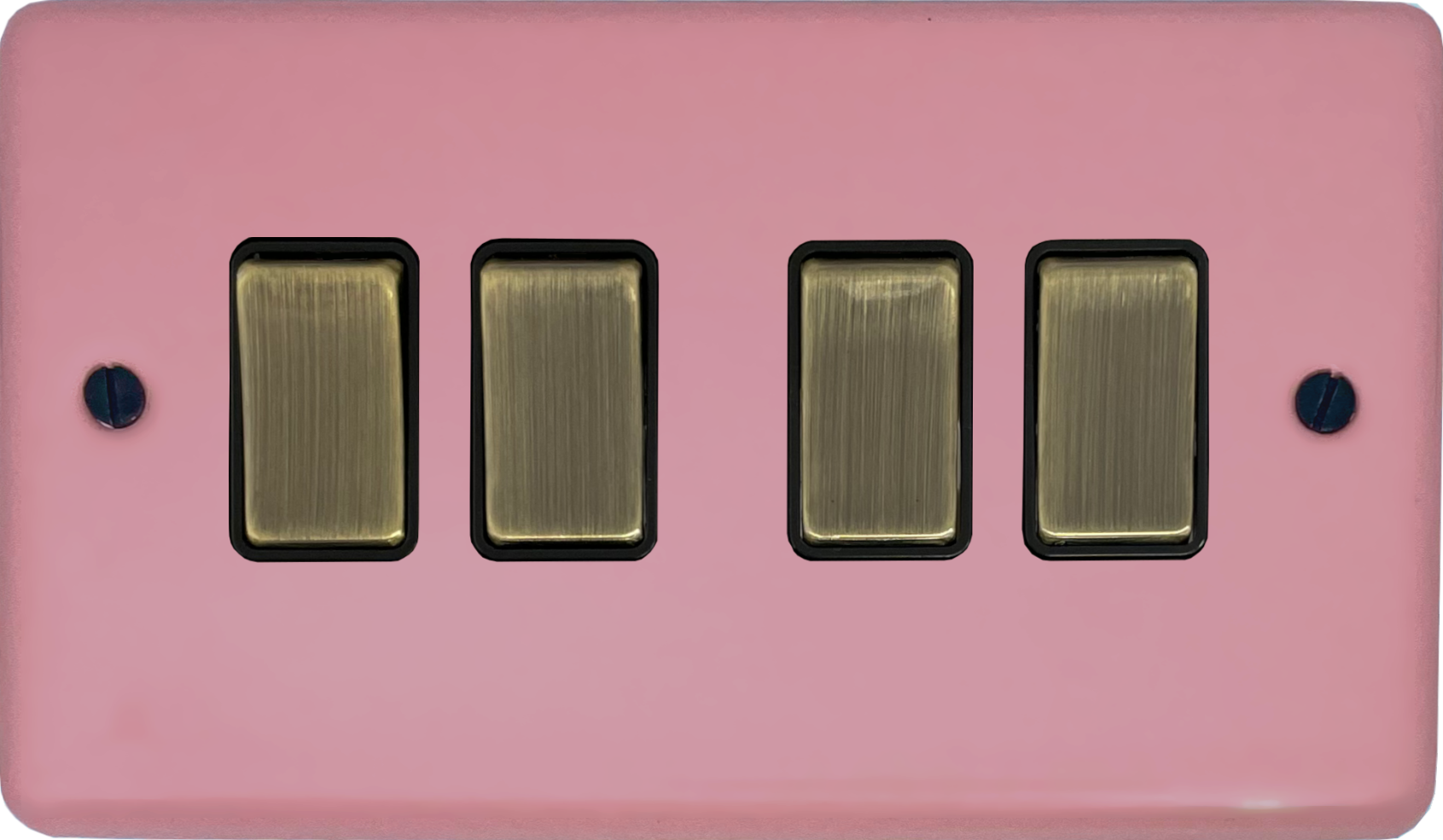 Contour Gloss Pink Light Switch (4 Gang/Black Insert/Antique Brass Switches) - CGP304-AB
