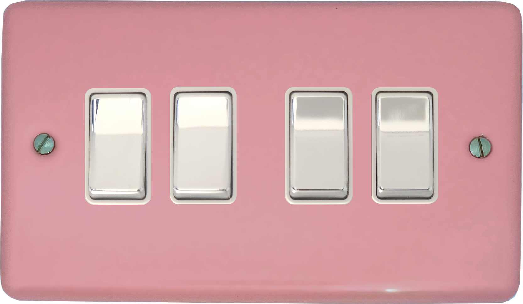 Contour Gloss Pink Light Switch (4 Gang/White Insert/Polished Chrome Switches) - CGP204-PC