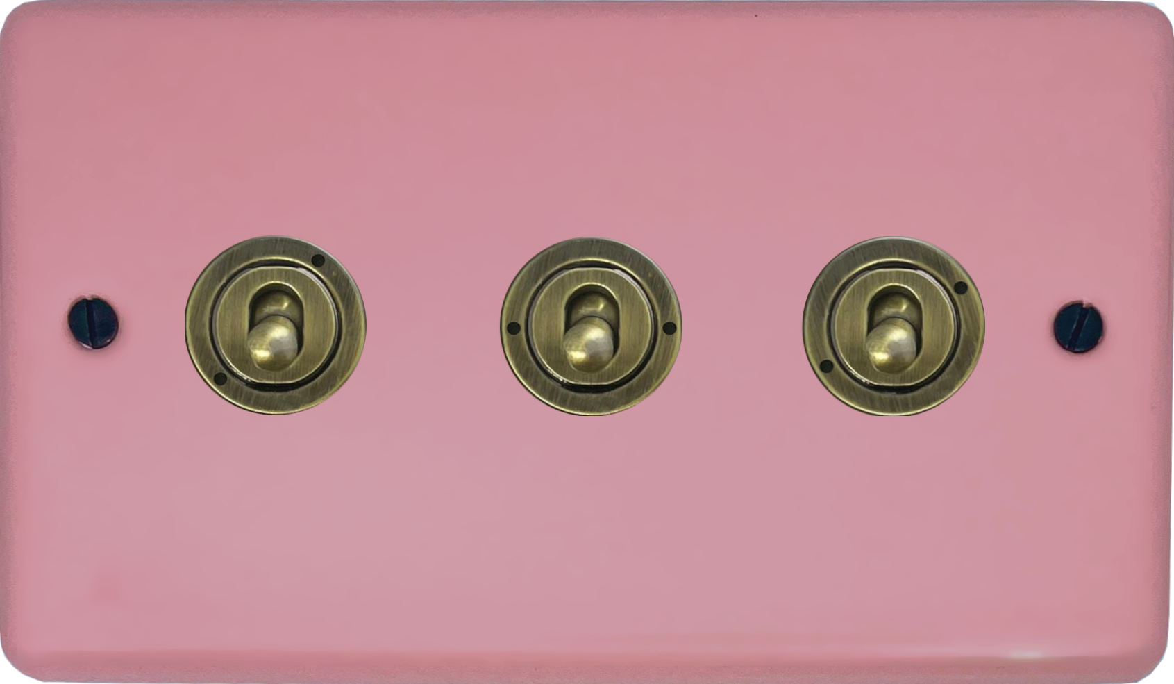 Contour Gloss Pink Toggle Switch (3 Gang/Antique Brass Toggle) - CGP383-AB