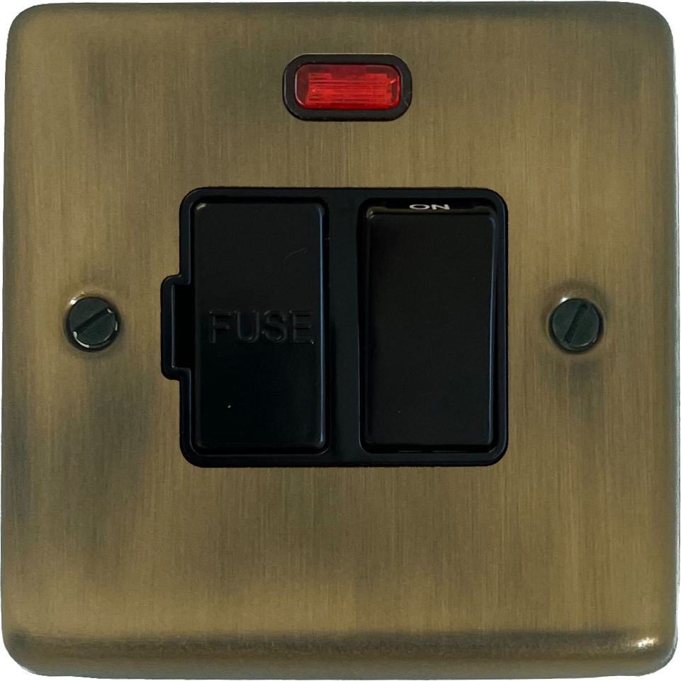 Contour Light Antique Brass Switched Fused Spur with Neon (Black Switch) CL.27B.LAB