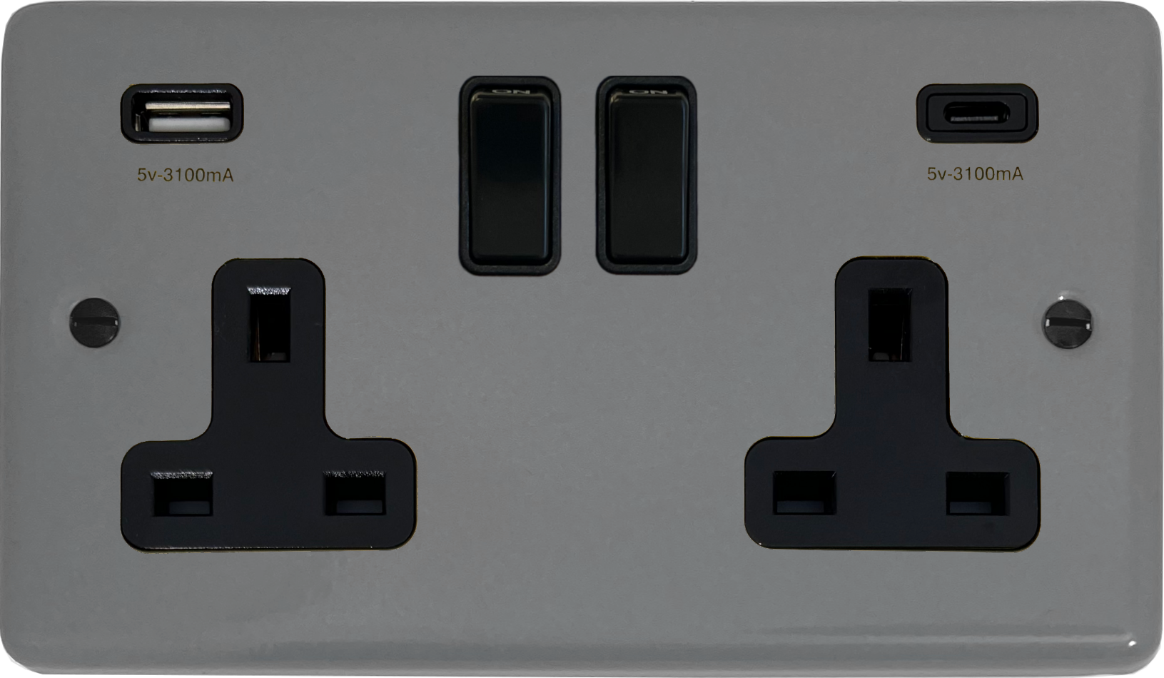 Contour Light Grey Double Socket with USB (USB-A and USB-C/Black Switches) CL.911B.LG
