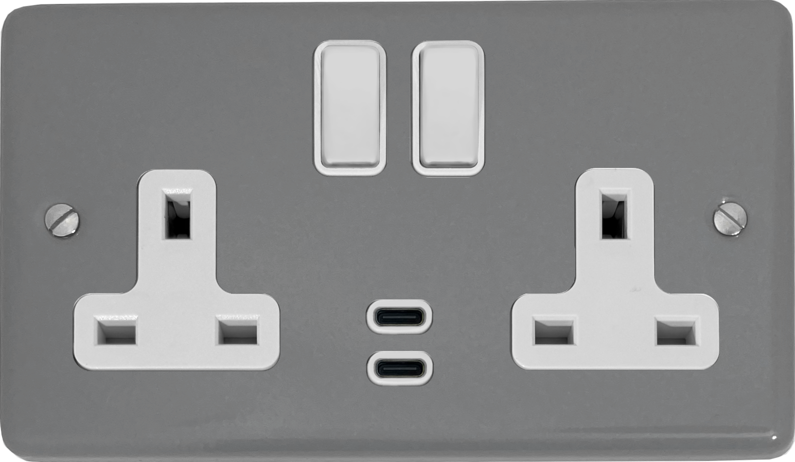 Contour Light Grey Double Socket with Dual USB-C (White Switches) CL.913W.LG