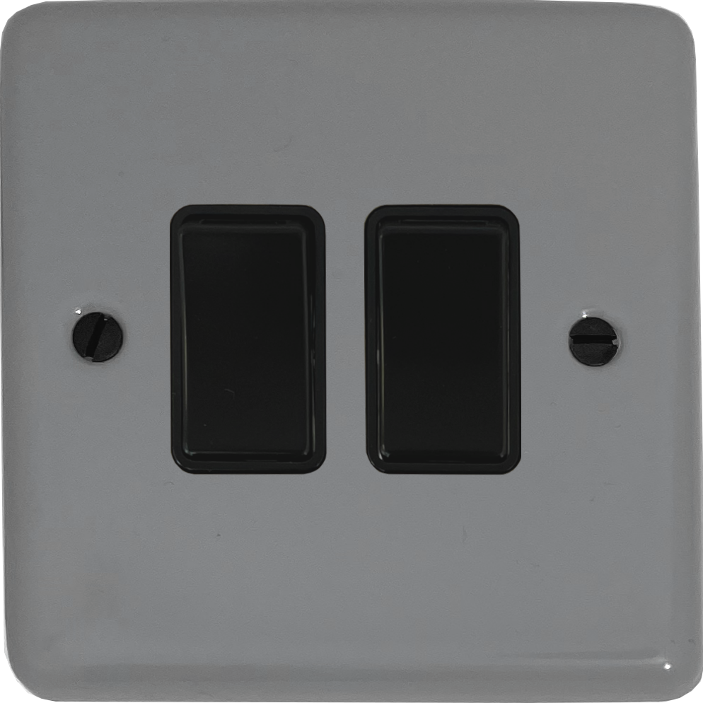 Contour Light Grey Light Switch (2 Gang/Black Plastic Switch) CL.2B.LG