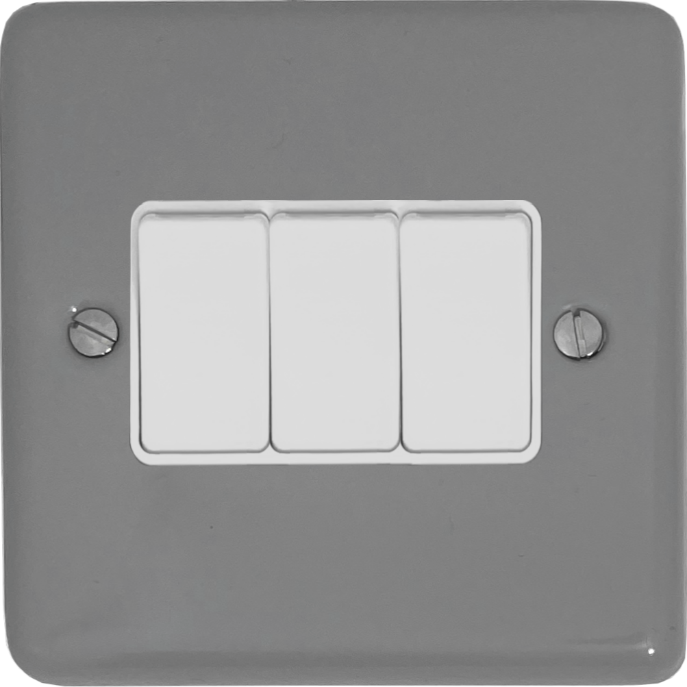 Contour Light Grey Light Switch (3 Gang/White Plastic Switch) CL.3W.LG