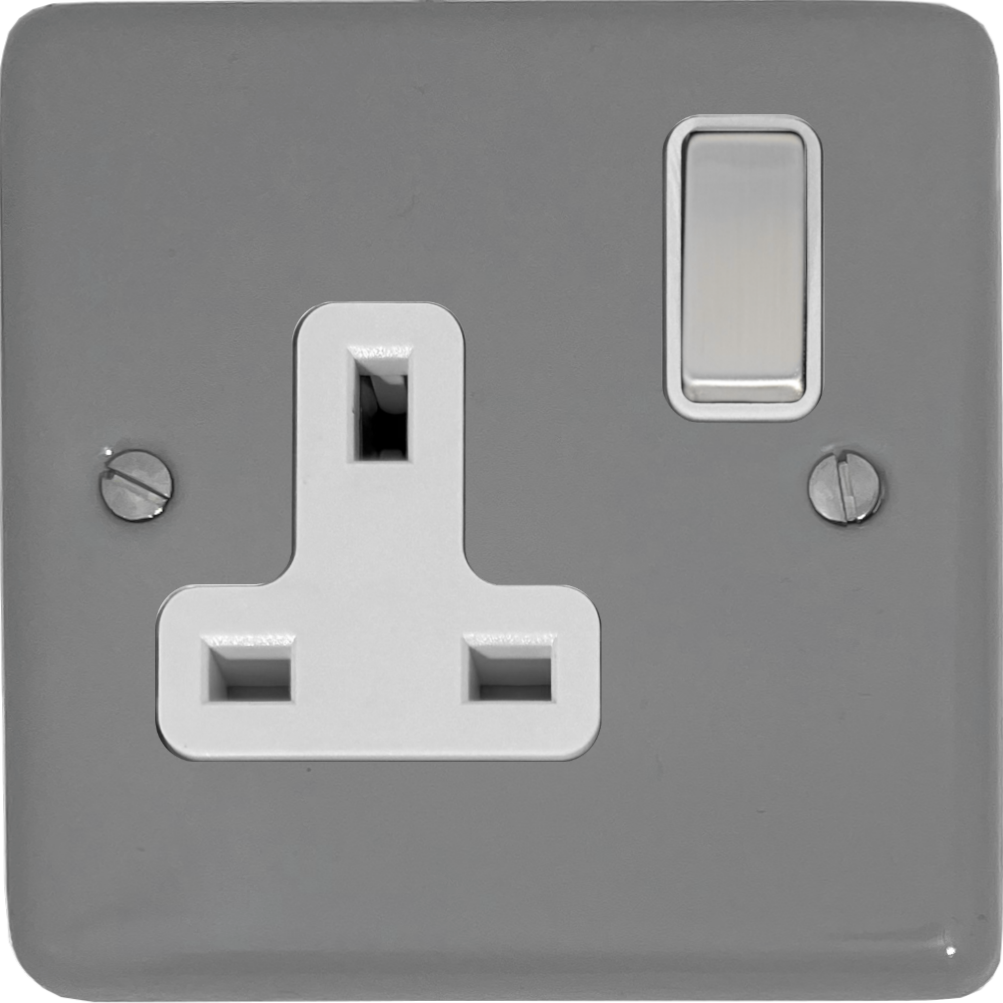 Contour Light Grey Single Socket (White insert/Metal Switch) CL.209.LG