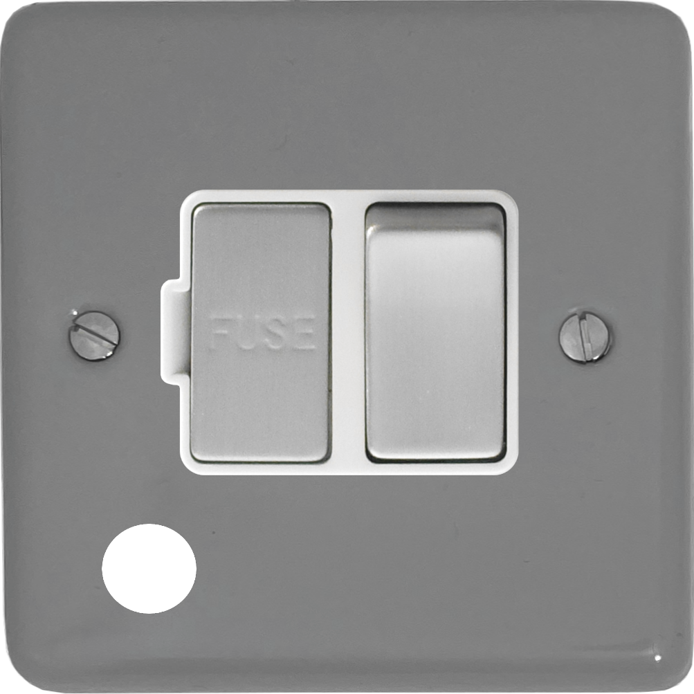 Contour Light Grey Switched Fused Spur with Flex Outlet (White Insert/Metal Switch) - CLG256