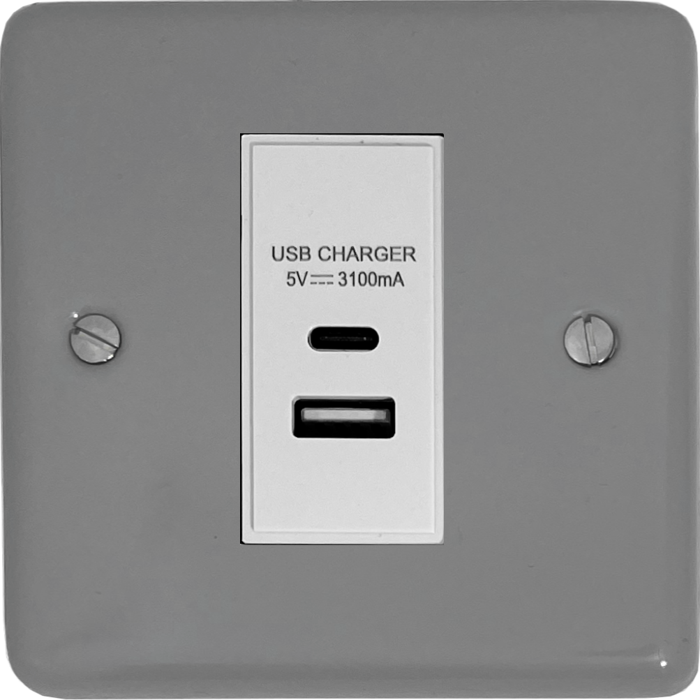 Contour Light Grey USB Charger (USB-A and USB-C) (1 Gang/White insert) CL.41W.LG