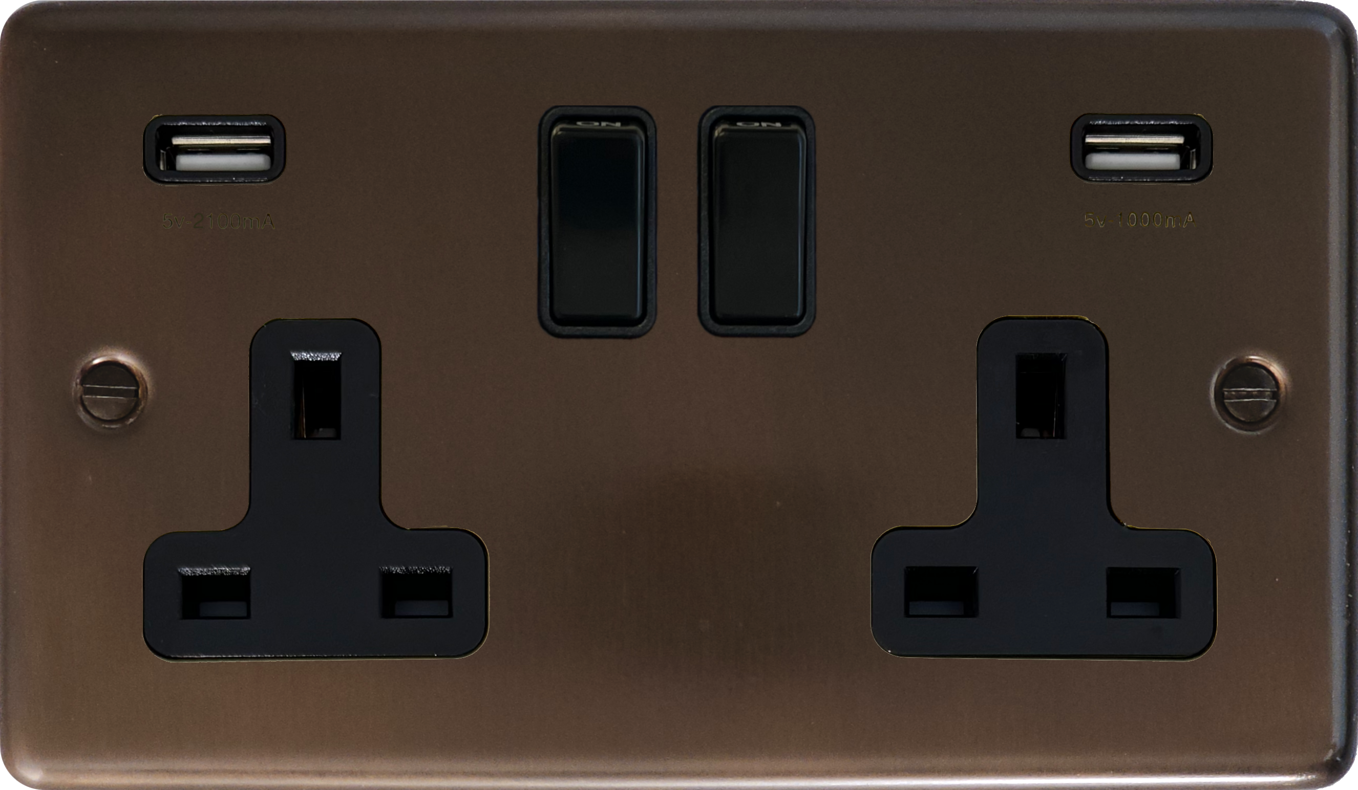 Contour Medium Bronze Double Socket with USB - CMBZ910B