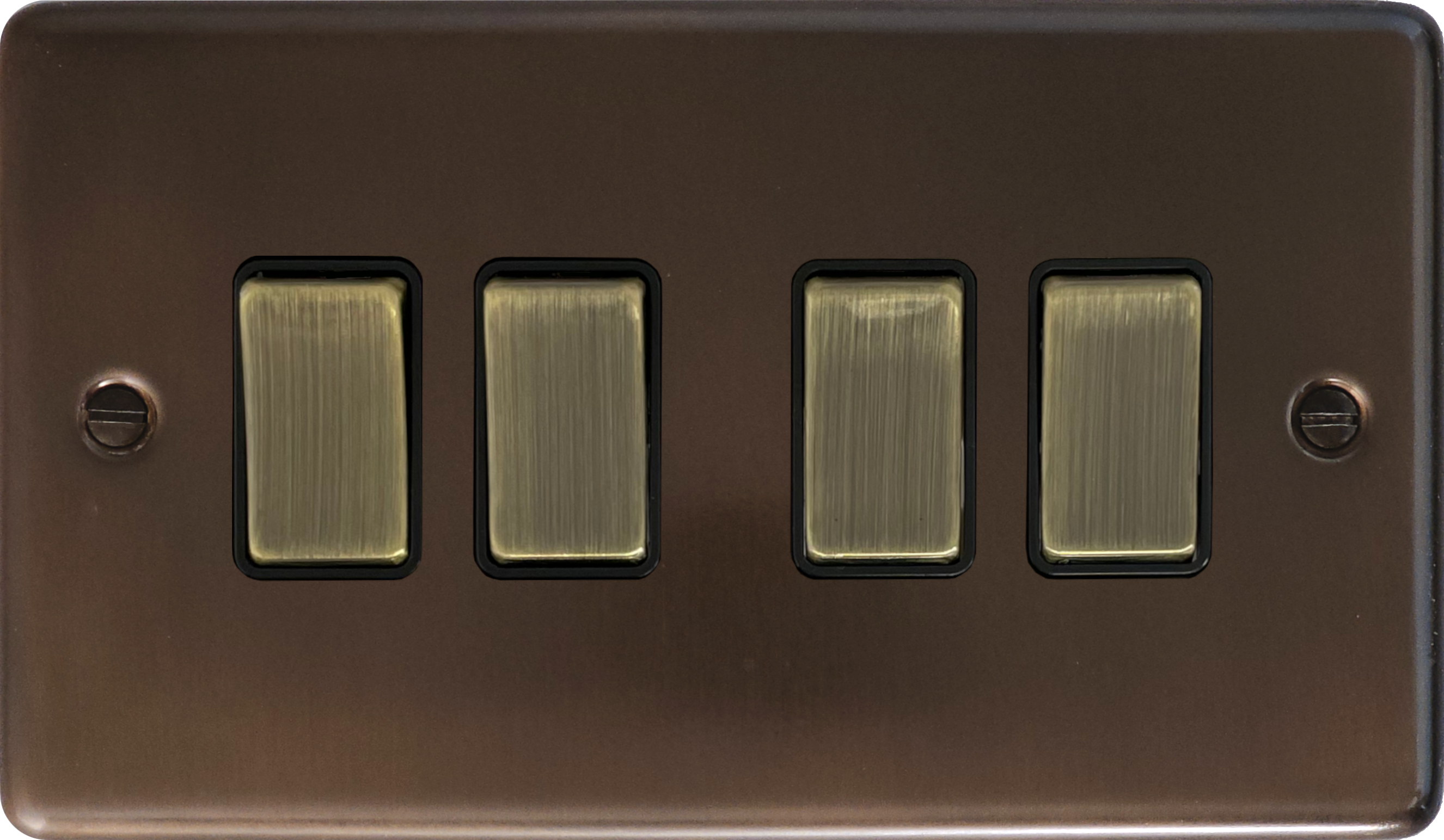Contour Medium Bronze Light Switch (4 Gang/Black Insert/ Antique Brass Switches) CL.304AB.MBZ