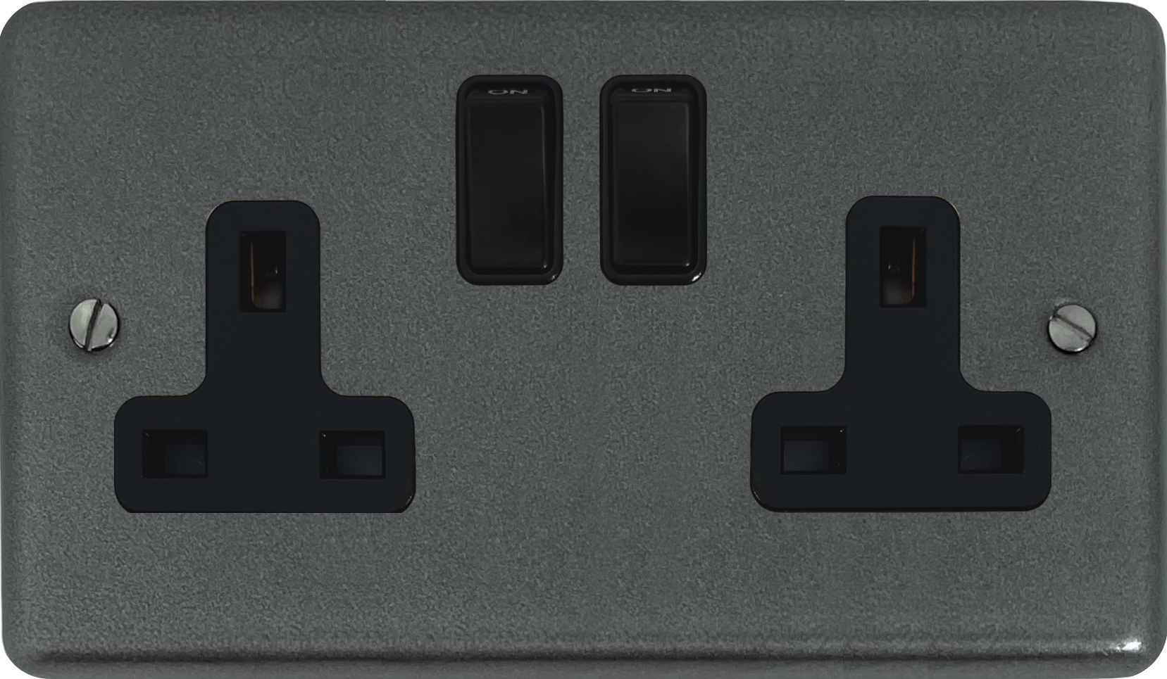 Contour Pewter Double Socket (Black Switches) CL.10B.P