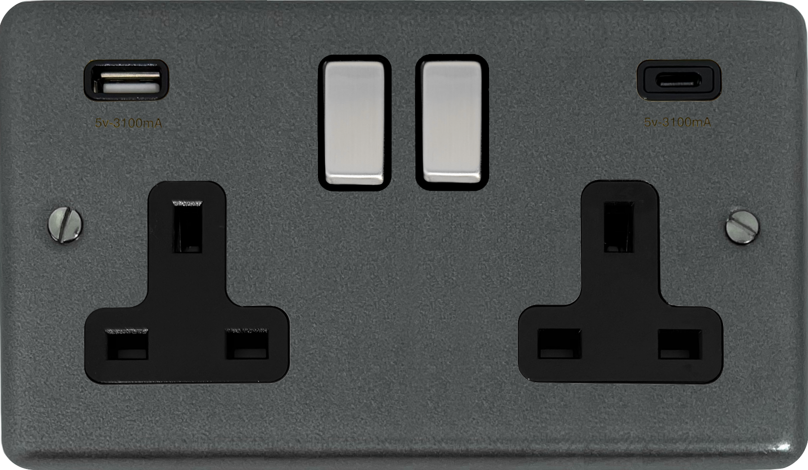 Contour Pewter Double Socket with USB (USB-A and USB-C/Black Inserts/Steel Switches) CL.3911.P