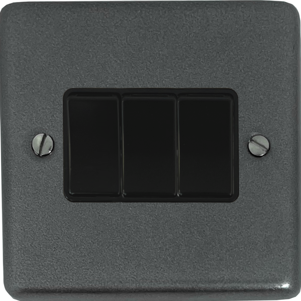 Contour Pewter Light Switch (3 Gang/Black Switches) CL.3B.P