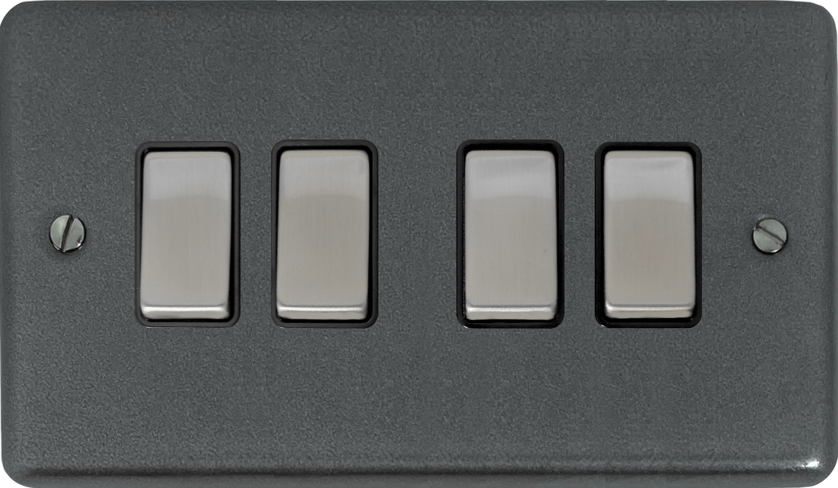 Contour Pewter Light Switch (4 Gang/Black Insert/Steel Switches) CL.304.P