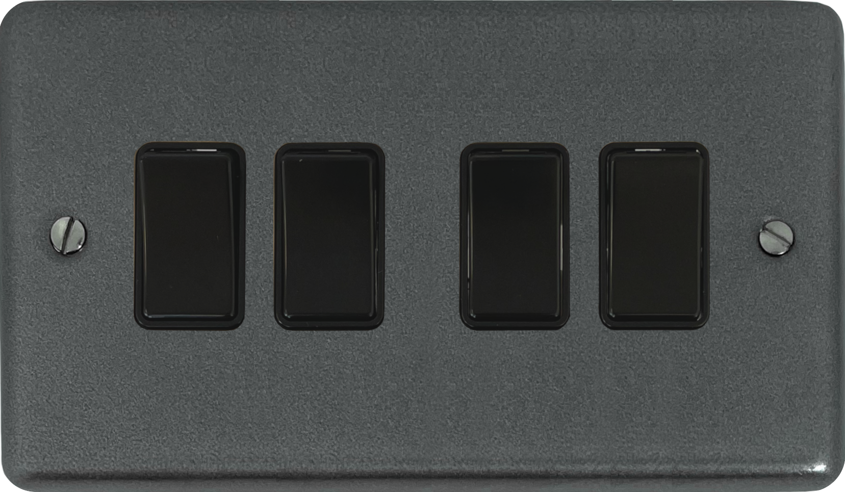 Contour Pewter Light Switch (4 Gang/Black Switches) CL.4B.P